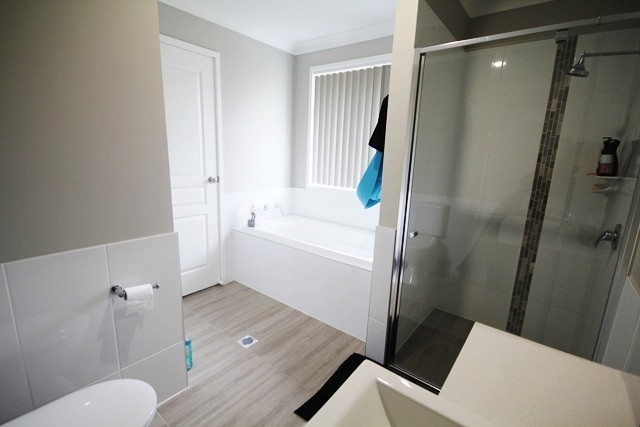 Side access to the rear yard, double garage, four bedrooms with two bathrooms.