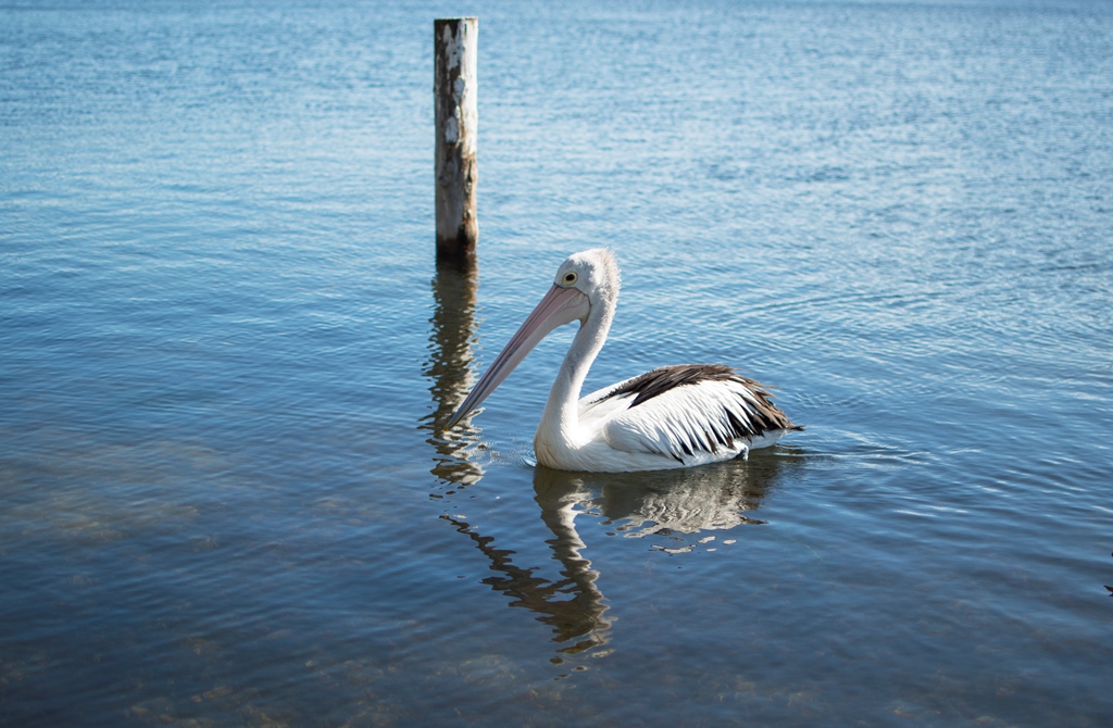 Wake up, open the blinds and see the pelicans sitting on the jetty or watch the ducks coming over for breakfast. The birds will come in large numbers to feed from your hands and hop on your arms or shoulders.