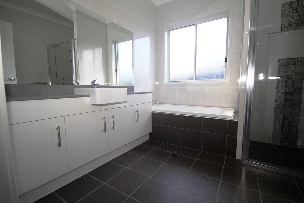 The main bedroom is located at the rear of the house and is extremely generous in size, with a large walk in robe and en-suite with double vanity and large shower.