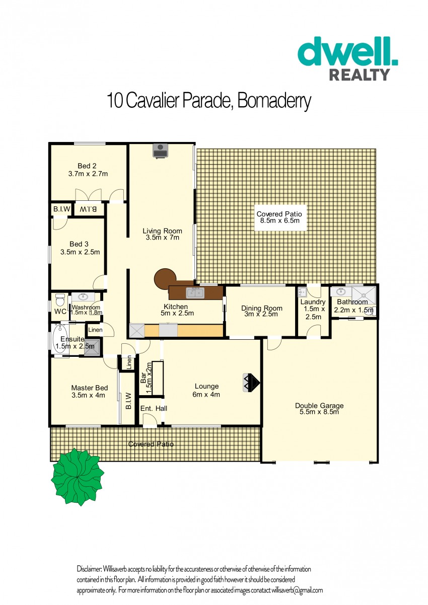 All 3 bedrooms have built in robes and are all close to the central 3 way bathroom. The double garage with auto lift doors is of a generous size and has an additional bathroom with shower, vanity and toilet.