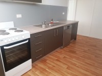 Modern kitchen with plenty of space, storage plus a dishwasher.