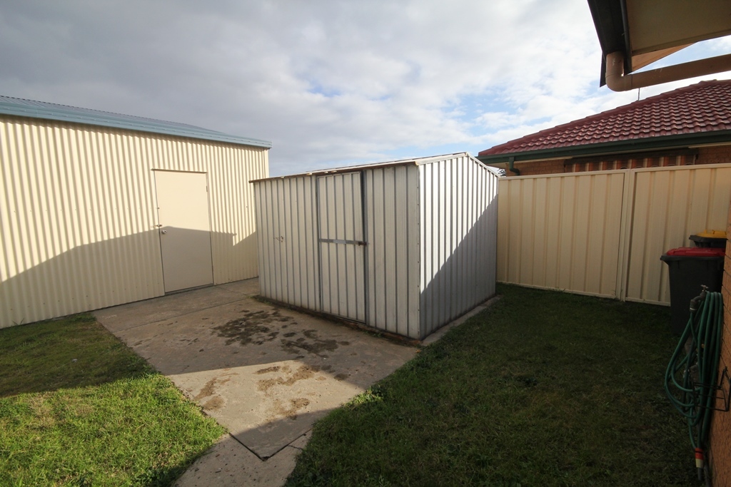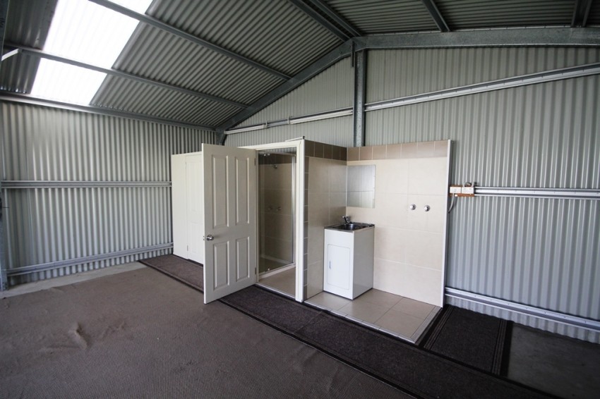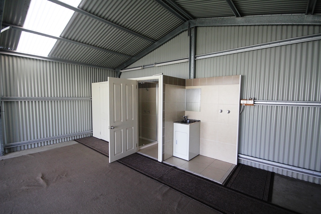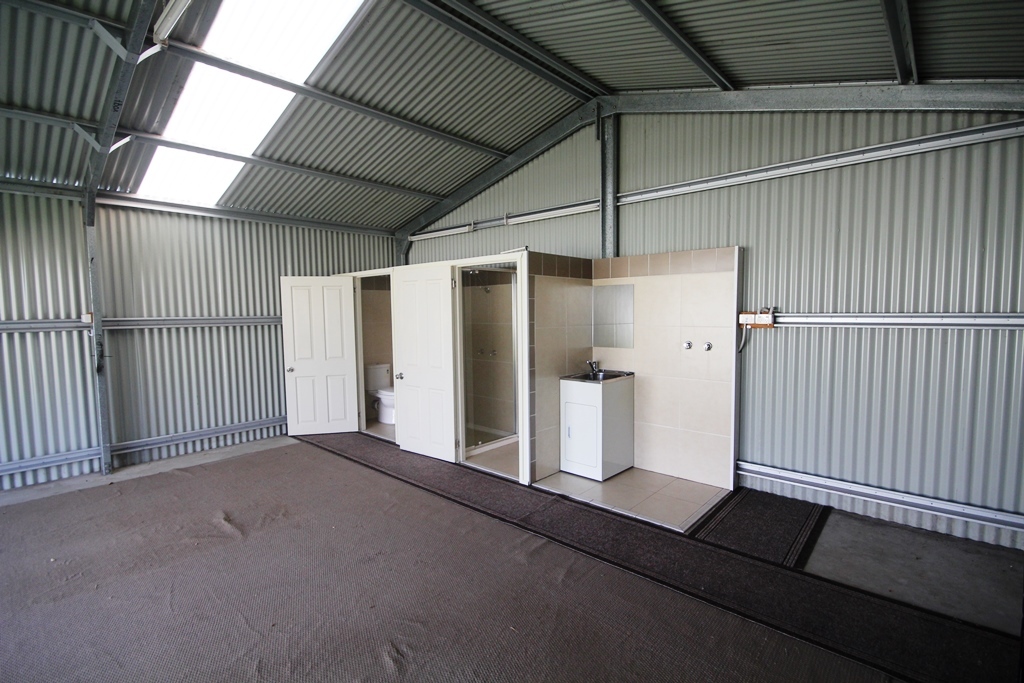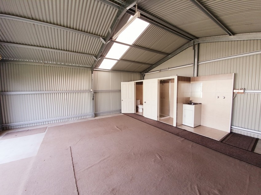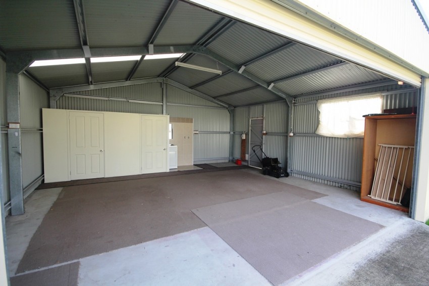 The shed has side access and concrete double driveway. Being on a corner block we have front and side access providing convenient access. Shed has its own toilet, shower and laundry.