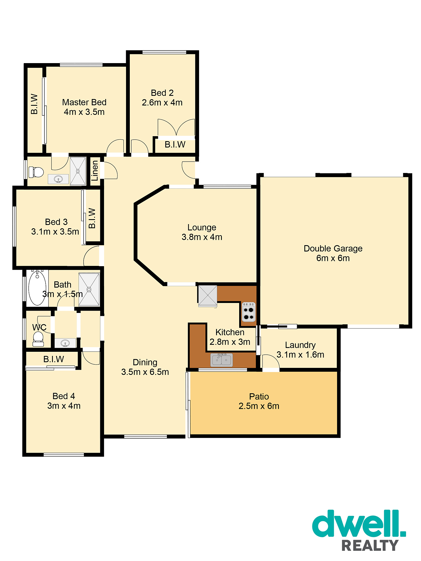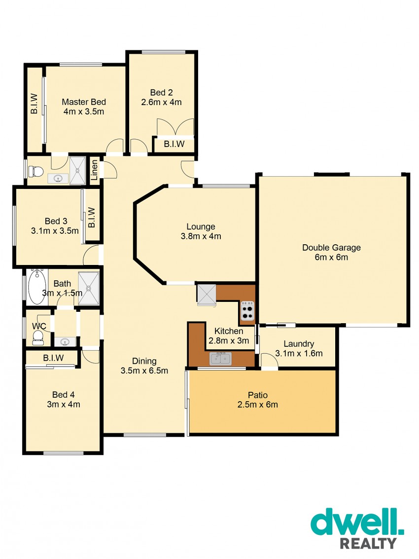 Comprising of four bedrooms, this is a well designed floorplan with a generous master at the front of the home that includes built-in robes, split system for heating/cooling and ensuite. Bedrooms 2, 3 & 4 include built in robes and are serviced by a well located family bathroom.
