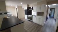 - Large modern galley style kitchen with dishwasher, large gas stove and walk in pantry